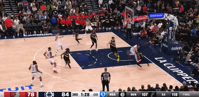 上半场 快船被 开拓者的小阵容打得毫无招架之力,一度断电,小卡这个抛投不中,夏普快攻一骑绝尘轻松暴扣,开拓者打出了一波32-10的冲击波。